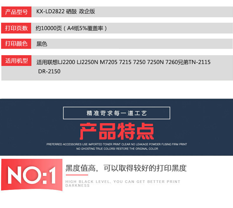 凱欣政企版 KX-LD2822 硒鼓 適用聯(lián)想LJ2200 LJ2250N M7205 7215 7250 7250N 7260兄弟TN-2115 DR-2150 全國統(tǒng)一價(jià):150元