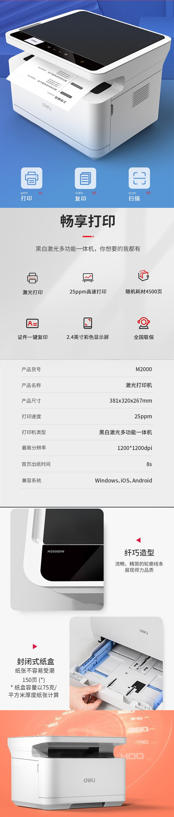 得力打印機M2000DW
